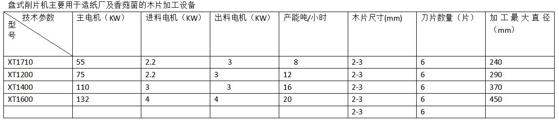 盤(pán)式削片機(jī)主要用途為造紙廠、硅廠、高密度板廠、香菇菌等削片加工的專用設(shè)備,加工原料廣泛于各種樹(shù)木及竹子,機(jī)型分XT1000、XT1200、XT1400、XT1600、XT1800型,刀片數(shù)量常用為3--6片,可與木材剝皮機(jī)組成流水線使用,產(chǎn)量每小時(shí)8--30噸。